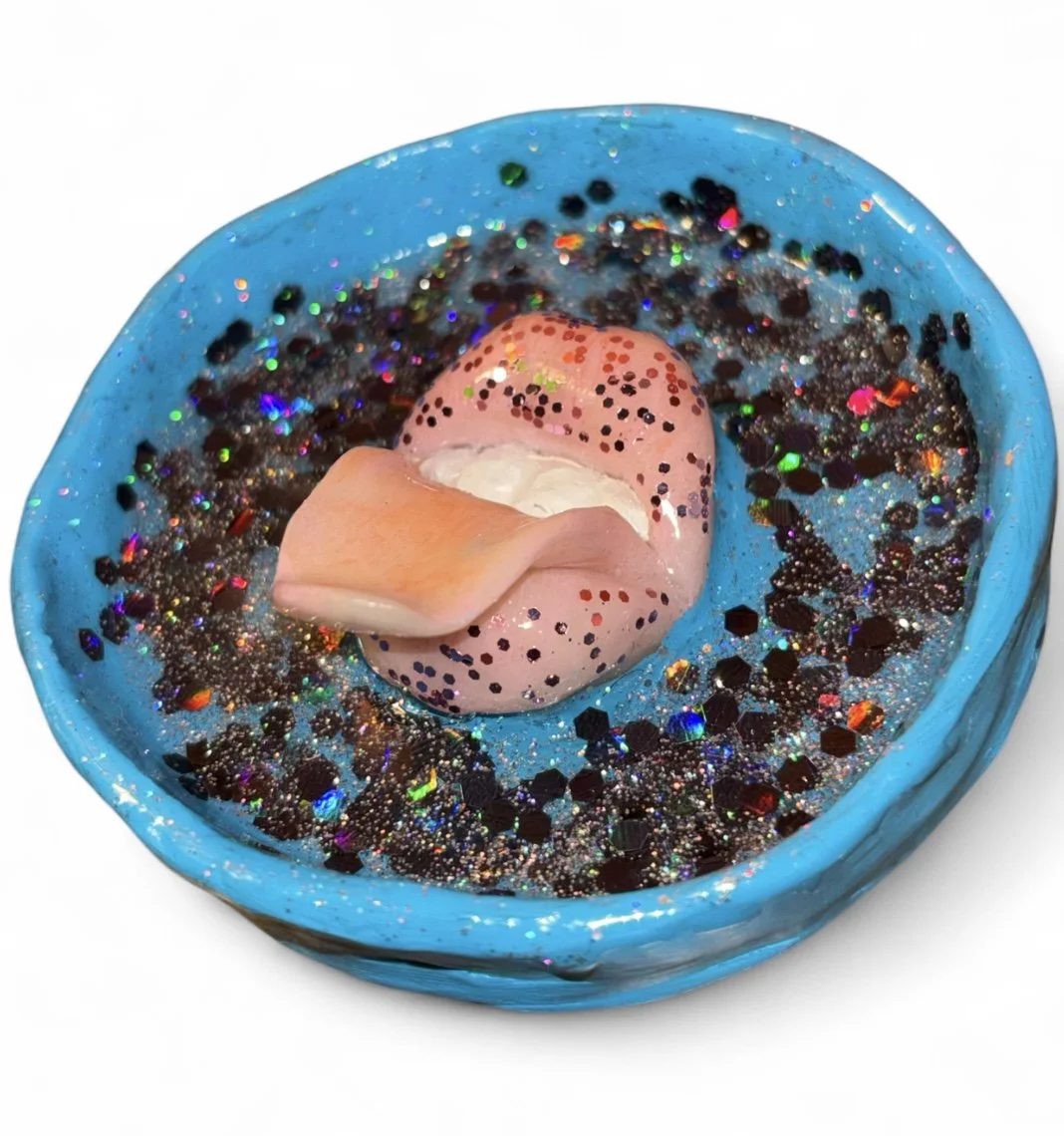 Hand-sculpted polymer clay dish, sealed in resin for a glossy, glass-like finish.